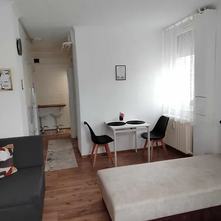 The apartment offers convenient self-catering facilities, including a mini-kitchen with a refrigerator, a cooktop, and kitchenware. There is Autobuszallomas bus station a stone's throw from the accommodation.